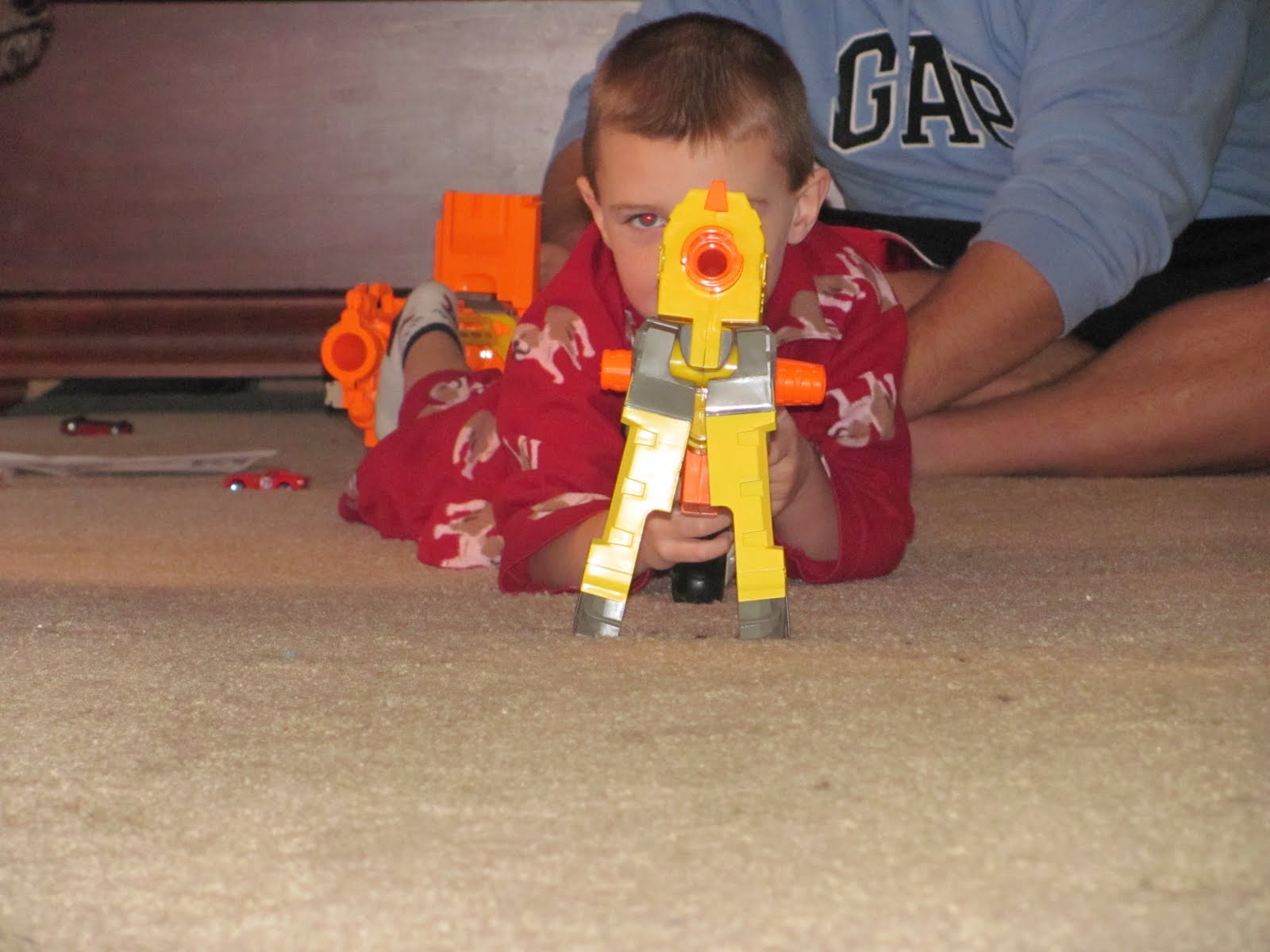 Here is day one. A big hit at our house this Christmas were the nerf guns. Requiring six d batteries and 50 darts. :)
